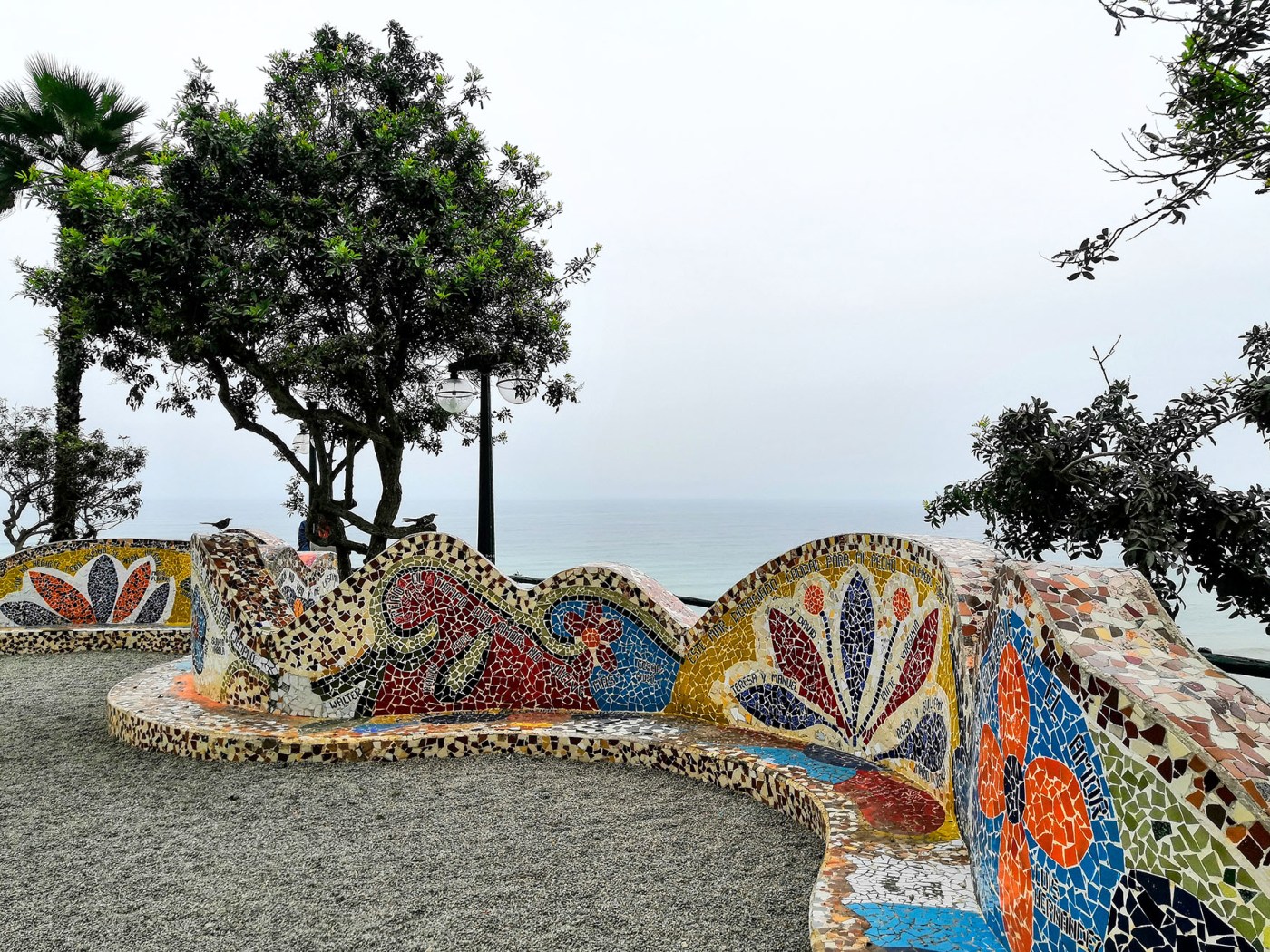 Mirafloreksessa kiertelin monia paikkoja ja yksi niistä oli Park of Love. Siellä oli ihanan värikkäitä penkkejä mosaiikkipalatyylisesti tehtyinä sekä joitakin patsaita.