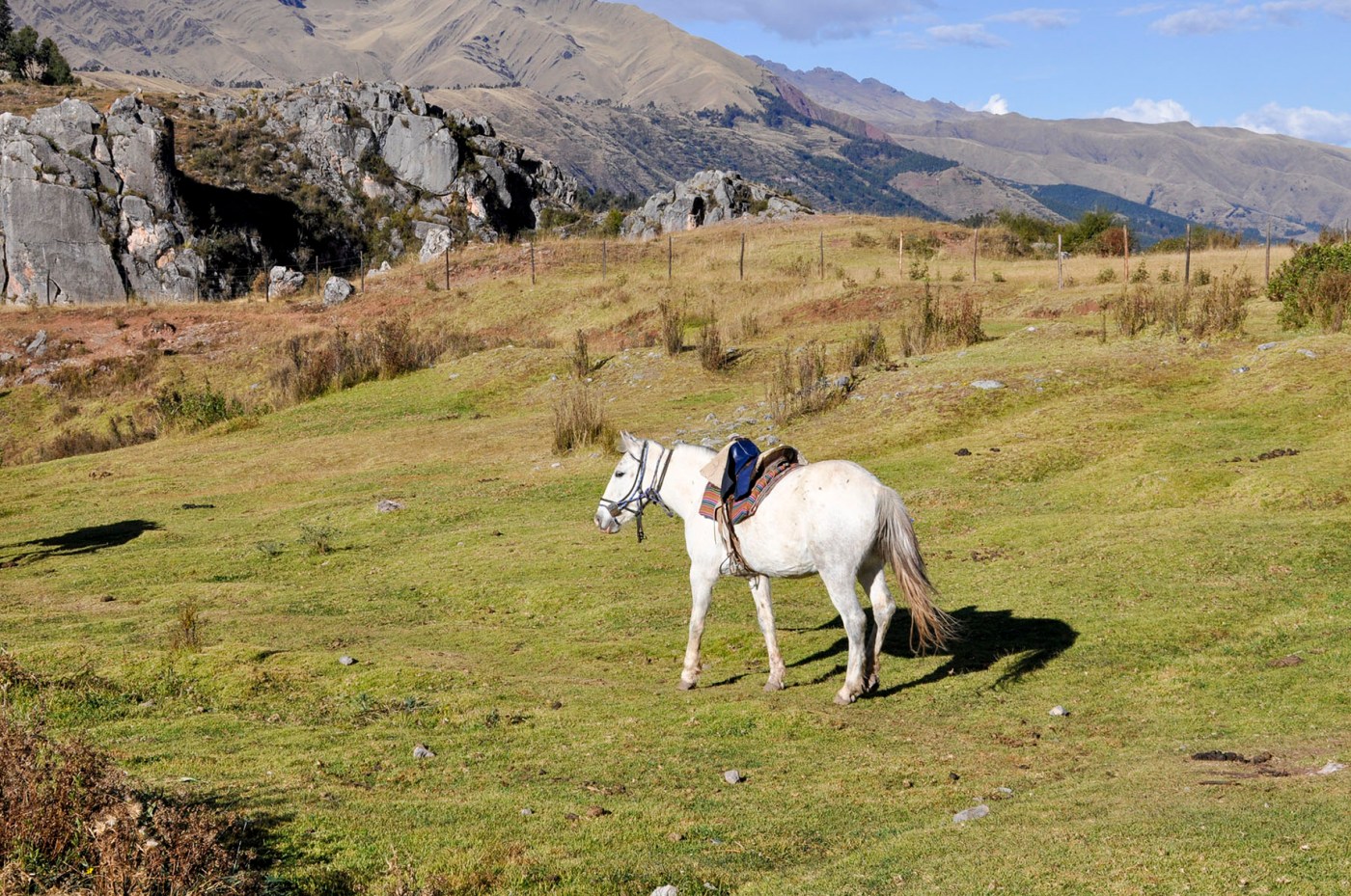 Retki Saqsaywamaniin vaihtui ratsastusretkeen ja päivä ratsailla oli varmasti ikimuistoisempi kuin alkuperäinen suunnitelmani. Kävelimme Saqsaywamanilta läheiselle tallille, joka oli alle kilometrin päässä. Tallilla oli hevoset valmiina odottamassa ja ratsastusretken hinta oli todella halpa. En nyt muista montako solia se oli mutta n. 30-50 solia. Lähdimme ratsastamaan kapeaa ja kivikkoista rinnettä ylöspäin kohti Saqsaywamanin luonnonpuistoa. Rinteen ylös päästyämme meidän opas jätti meidät ylhäällä olevalle aukiolle, kun hän lähti hakemaan tallilta vielä muutamaa uutta retkelle osallistujaa. Meitä jäi sinne kaksi ihmistä odottamaan ja meidän hevoset opas päästi irti aukiolle ja ne eivät siitä lähteneet mihinkään vaan kuljeskelivat syöden ruohoa.