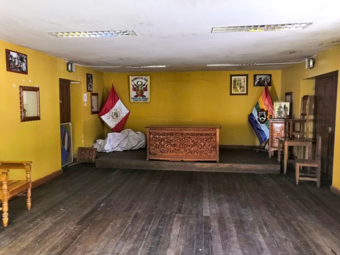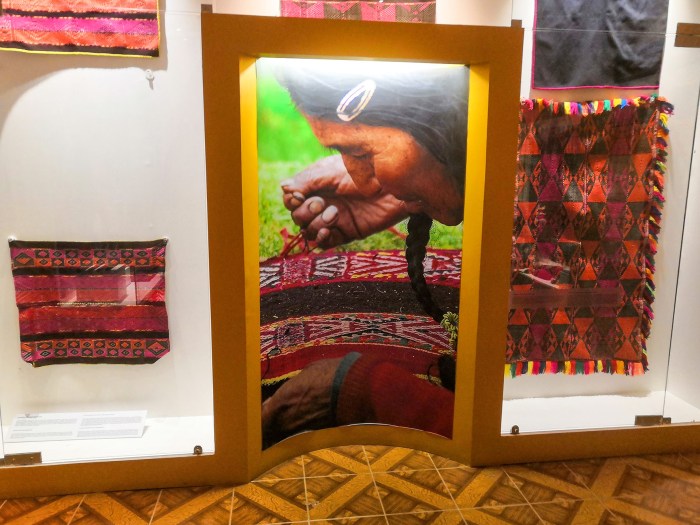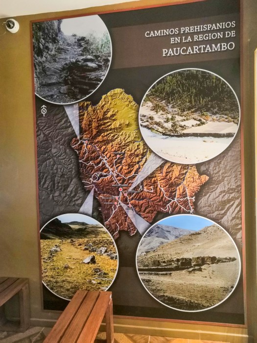 Kävimme myös vierailulla museossa Museo de los Pueblos de Paucartambo. Museossa oli esillä Perun vuoristoalueiden käsitöitä, valokuvia alueen luonnosta, tavoista, ilmastosta, jne. Siellä oli myös esillä kylän vuosittaisen festivaalin, Fiesta de la Virgen del Carmen de Paucartambo, esiintymisasuja, jotka olivat upeita.