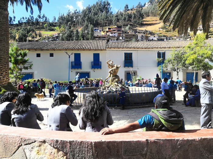 Matkamme jatkui alueen isoimpaan kylään Paucartamboon, jonne matkaa ei ollut kuin reilu 50km, mutta ajomatka kesti teiden kunnon vuoksi reilun tunnin. Matka jatkui yhä korkeammalle kiemurrellen kunnes siirryimme kapealle hiekkatielle, joka jatkui alas laakson pohjalla olevaan kylään. Tie oli osin niin kapea, että sitä mahtui ajamaan vain yksi auto kerralla ja jos vastaan tuli autoja niin sitten annettiin tietä peruuttelemalla hieman leveämpiin kohtiin. Tien vieressä oleva rinne alas laakson pohjalle oli pitkä ja jyrkkä, joten hiukan oli perhosia vatsassa ajamatkan aikana.