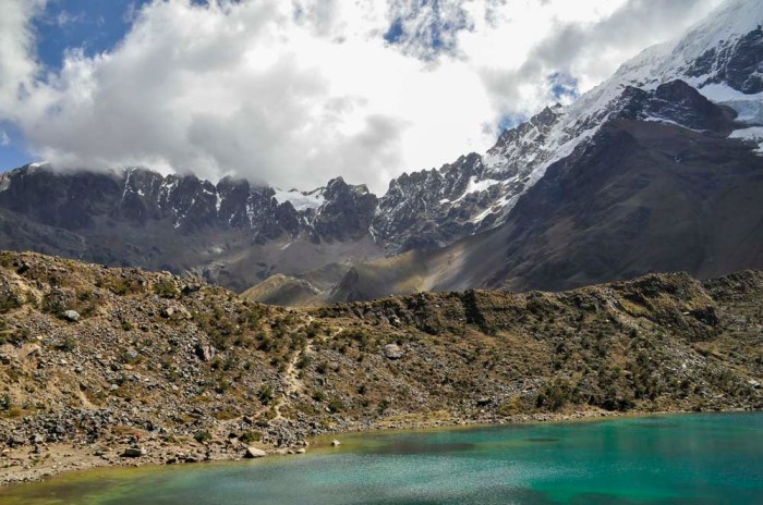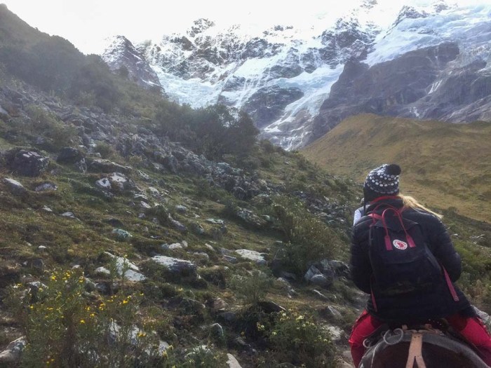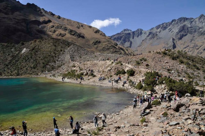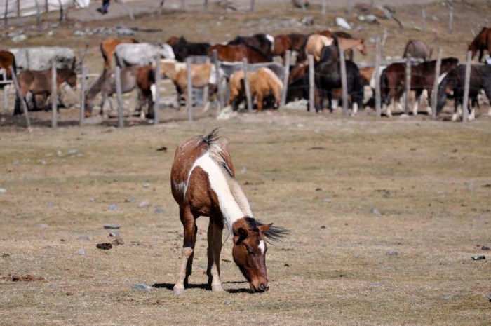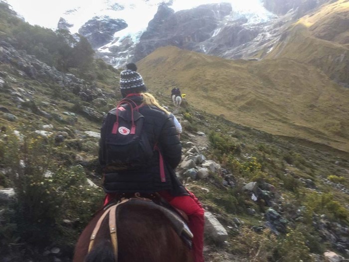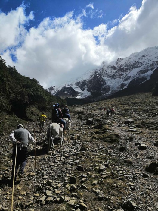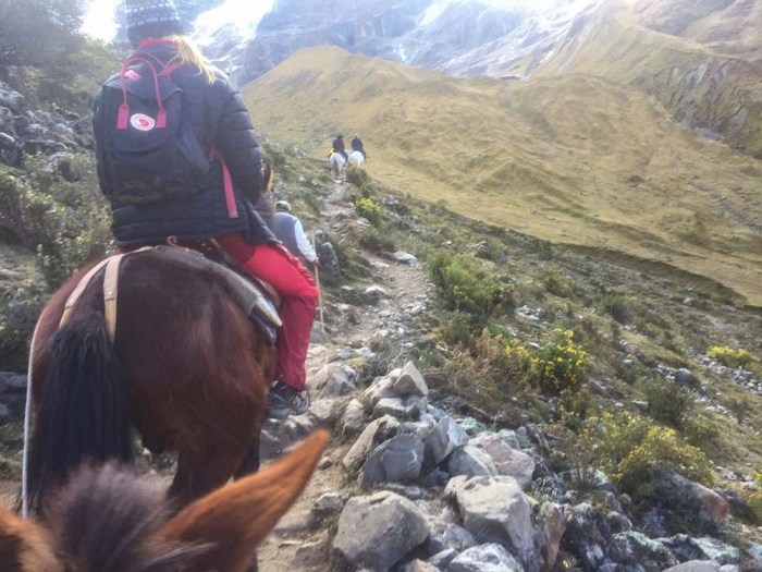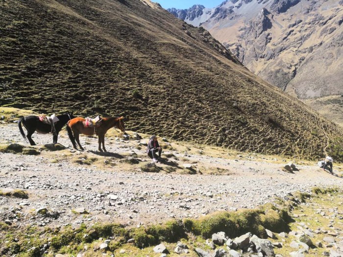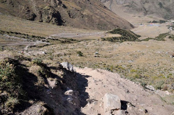 Söimme ensin alhaalla laaksossa pienen aamupalan ja sitten alkoi matka ylös järvelle. Olin meinannut patikoida koko matkan ylös mutta oppaamme kertoi, että oli myös mahdollista mennä alkumatka ratsain ja päädyin sitten hevoskyytiin, kun matka taittui siten nopeammin ja aikaa järvellä olemiseen jäi näin enemmän. Reitin pituus kokonaisuudessan oli noin 3,5km ja korkeuseroa oli noin 350 metriä, sillä nousu alkoi noin 3850 metristä ja järvi sijaitsi noin 4200 metrissä.