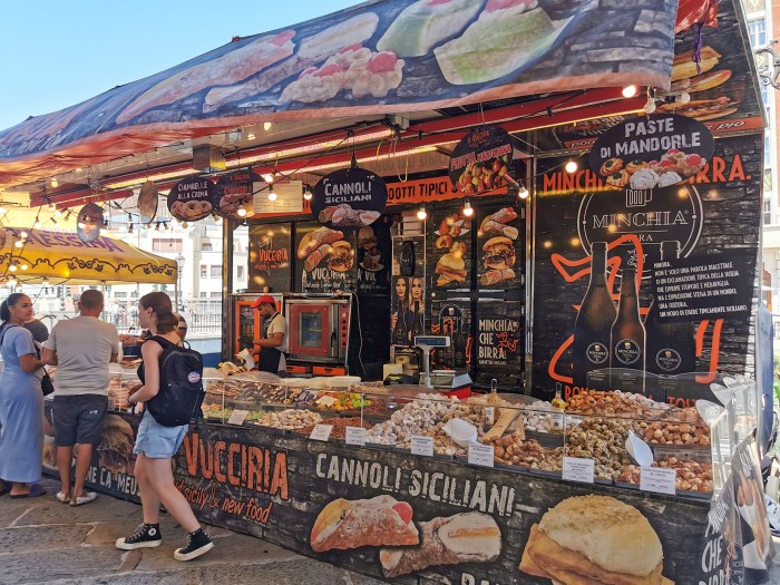 Jatkoin matkaa takaisinpäin ja kävelin Canal Grande:lle. Kanaalin varrella oli ravintoloita sekä useita ruokakojuja.