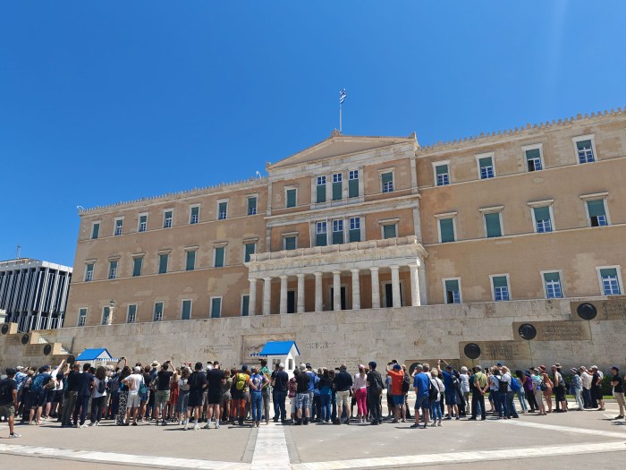 Seuraavaksi kävelimme kansallispuutarhan kautta parlamenttitalolle. Parlamenttitalon edustalla on tunnin välein tuntemattoman sotilaan hautaa vartioivien sotilaiden vahdinvaihto ja osuimmekin paikalle sopivasti vaihdon aikaan.