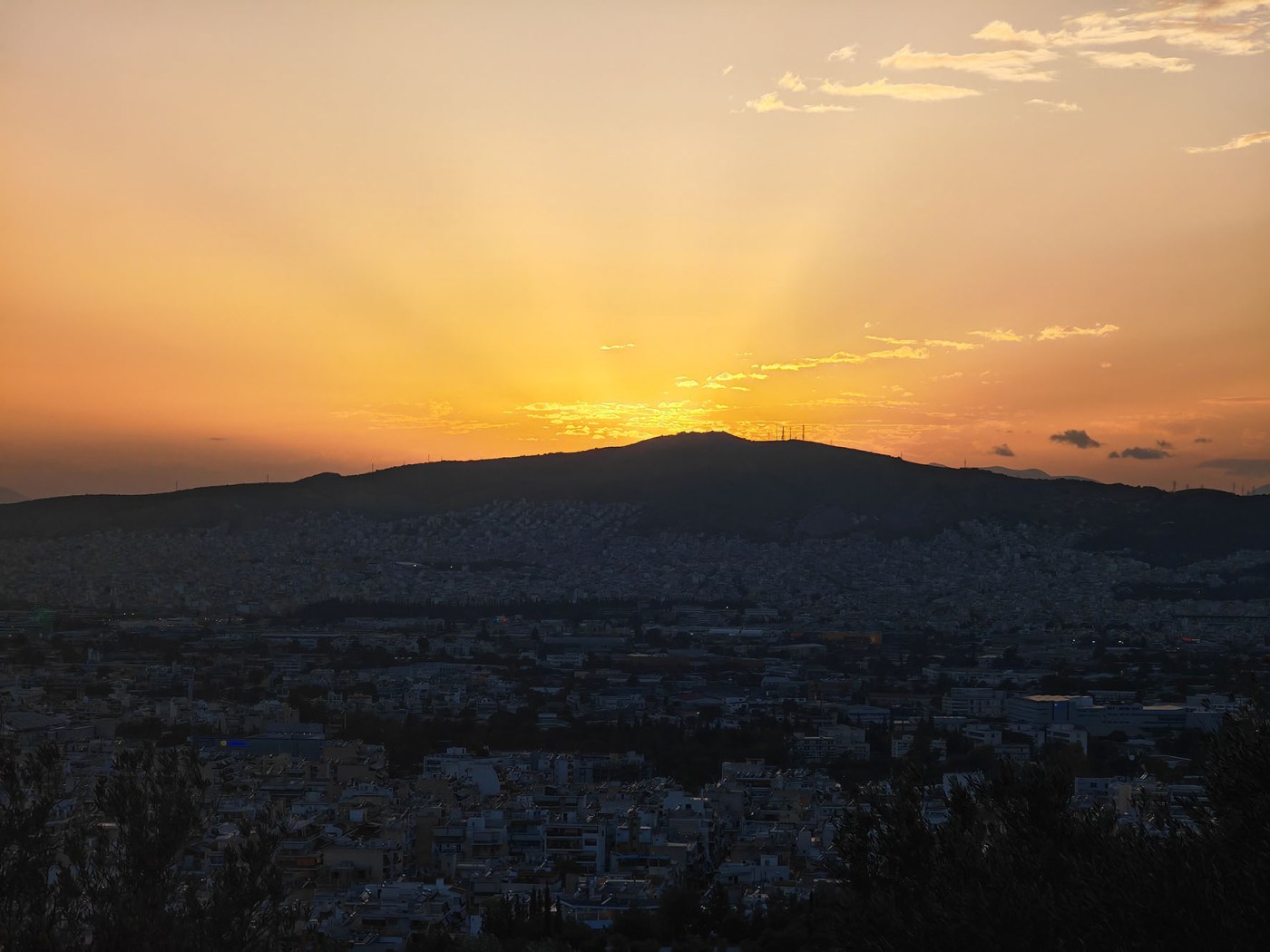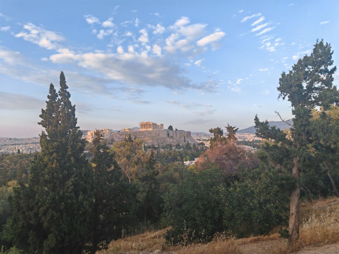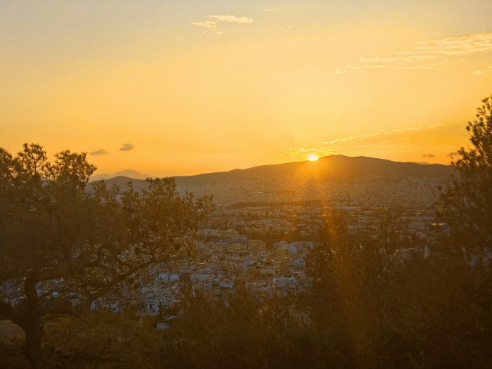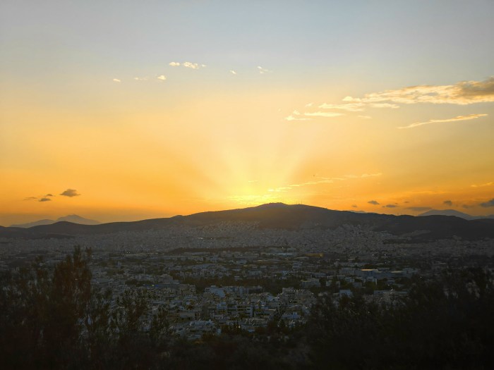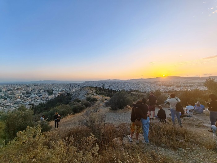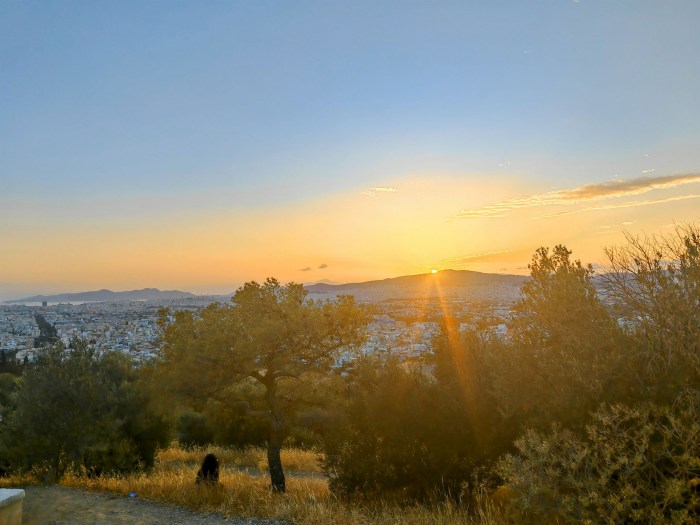 Yhtenä iltana lähdimme kävellen katsomaan Filopappou kukkulalle auringonlaskua.