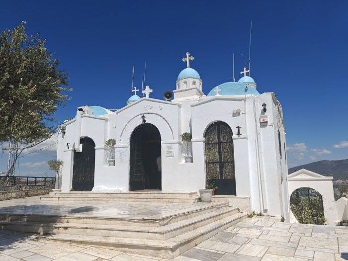 Kävimme myös Lycabettus kukkulalla ja sieltäkin oli hienot näkymät alas kaupunkiin. Kukkulalle pääsee joko kävellen tai funicularilla. Me mentiin ylös funicularilla ja alas tulimme kävellen.