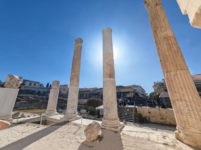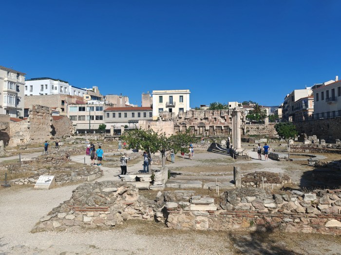 Acropolikselta kävelimme Plakan kaupunginosan kautta käymään Hadrian’s Libraryssä ja Roman Agorassa. Nämä molemmat olivat aika pieniä kohteita, joten niiden kiertämiseen ei mennyt muistaakseni puolta tuntia pidempään.